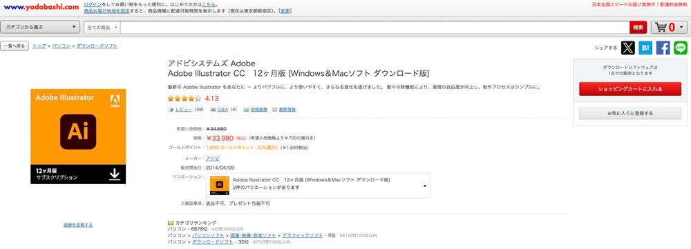 Amazonの通常販売で、Illustratorを安く購入することができます。